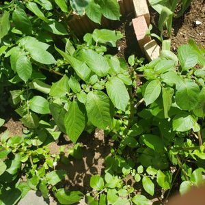 じゃがいもモリモリ育ってます😁 育ちの良い2本くらい残して芽かきするらしいのだけど… それぞれ元々2本しか出てきてないから そのまま土寄せして追肥しました💕