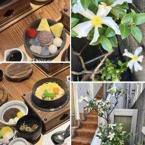 祖母が大好きだった甘味屋さん 子供の頃から親しんだお店 2〜3年前?に残っていた最後の店舗も閉店してしまい残念に思っていました 昨年に復活しているのに気が付き母の希望で食べに〜🚃💨 ミニ甘味付きの五目釜めし🎶 使い込まれた蓋に感動してみたり🤭 母もとても喜んでよかったよかった お店の近くを散策中に花びらの細い山茶花がお店の並ぶ賑やかな場所で可愛く咲いていました☺️