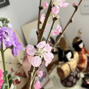 昨日までのポカポカ陽気から変わって雨の✨️ひな祭り🎎✨️ 母が探してきた桃が可愛らしく、ここだけ暖かな春です🌸