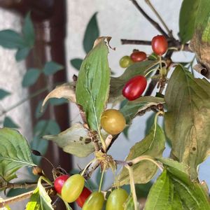 サンシュユ 色付きはじめました(画像は1週間前) 今年の実は例年より少しぷっくり😚