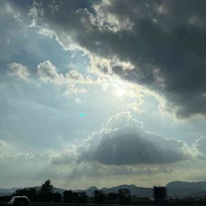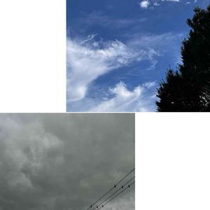 昨日の空と今日の空 カラカラ暑さからジトジト暑さへ 昨日は白い雲と青空の下でお出かけでした 上空にヘリコプター🚁🤭小さすぎますがわかるかな? 最近は晴れと雨雲の境界線がよく見られます いつも降らずに過ぎていましたが、今日は昼過ぎに凄い雷⚡️の光と音 横殴りの雨になりました 庭の狭い通り道の土がひび割れるほどの乾きも少しは潤ったかな?