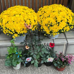 前の投稿の続き🤭 2個目のボサ菊もゲット 娘から遅くなった敬老の日プレゼントという事で、一緒にお花屋さんへ行って2個目のボサ菊と母が選んだダリアや白の秋明菊 花が終盤のせいか値下がっていた大文字草も一緒に〜 まとめてプレゼントしていました😊