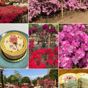 お友達とツツジを見に行った母 天気も良く暑すぎず快適だったようです ボリューム満点なツツジを上手く撮影してきてくれました😊 桜のケーキをお土産にご機嫌で帰宅 上にのっている桜の花は塩っぱくなかった🤔 後味にほんのり塩気があったかな〜 中には柔らかいお餅が薄く入っていたり美味しくて目にも綺麗なバームクーヘンのケーキでした🎶