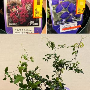 違う違う😂そうじゃないのよ 母の日用にクレマチスを探す旅をしてきました ぜーんぜん見つからない😑 あっても探しているタイプではなく咲きの悪いのが1〜2鉢💦 夫が「あそこにもあるよ〜」っと言うので見に行くとお買い得コーナー(まあ処分品棚です) そうそう😂この感じ💦 でも…プレゼントには出来ないのばかり😞 何種類もあって迷いましたが、蔓の残っている株のに絞って悩み… 決められず2株😂 土たっぷり 重い〜(笑) そんな大荷物を膝に乗せ運び中の電車内 網棚から水が降ってきました😨何事?!