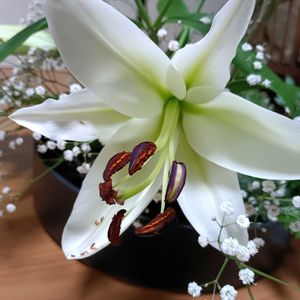 ユリ 白いユリの花に 涼を感じます。 花粉の多さに ただただびっくり😮😯😭 これも魅力のひとつかも ・・・ (@_@)(@^▽^@)٩(๑❛ᴗ❛๑)۶