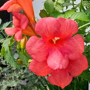 ノウゼンカズラ 花言葉 ・名声 ・栄光 ・名誉 ・華のある人生 ノウゼンカズラの華やかな お花さんに逢えました。 夏を象徴するかのよう です。 深紅に負けない 日常でありたいと 思います。 😲😮🤗🥰🥰