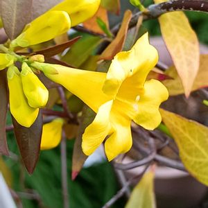カロライナジャスミン。 小さな庭で「秋🍁」を 見つけました。 あちこちで紅葉🍁の便りが 届く中あまりにも近くで 見つけ😯😮😳 ちょっと嬉しい時間です。 ( ・_・)٩(๑❛ᴗ❛๑)۶