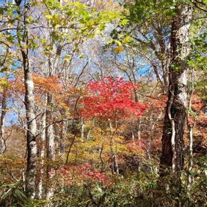 谷川岳ロープウェイ乗り場前🗻 空は真っ青☀ ドウダンは真っ赤🍁 今日は行楽日和🌿 県外ナンバーで渋滞🚙🚙🚙