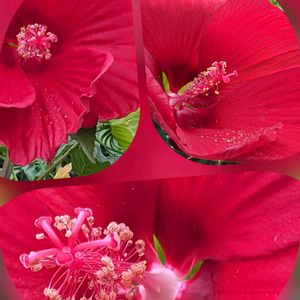 真っ赤な火曜日〜😍💕 タイタンビカスが次々と咲いて来ました😊 一、二枚目はバルカン、中矮性で花弁に軽くフリルが入るのが特徴で、タイタンビカスでも最も本当の赤に近い赤の品種だと思っています❤️ 三、四枚目はブライトレッド、初期の品種で高性でやや小ぶりの丸弁の可愛いお花です💕五枚目の写真で、左側に咲いているのが、前出のウラノス、右側のがブライトレッドです。写真が小さくて分かりにくいかも知れませんが、背丈が同じくらいなのに、花の大きさが倍くらい違いますよね、どちらも好きなお花で優劣付ける気は無いですが、大きなお花が好きなかたには、ウラノスがおすすめですね😁🌺 ピンクや白のタイタンビカスも咲いていますが、そちらはまた後ほどご紹介しますね〜🎶