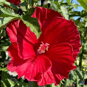 今年初のタイタンビカス開花です😊巨大輪のウラノス、そういえば去年も一番花はこの品種でした🌺😍青空にでっかいお花がどどんと映えて、夏が来たなあと感じますね~まさにべらぼうなお花ヾ(≧∇≦)ノ