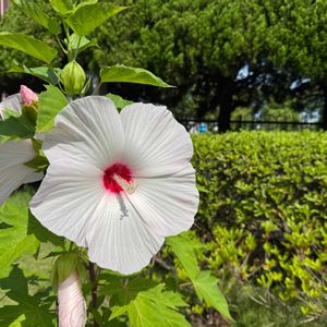 昨年8月に散歩で出会えたタイタンビカス もうそろそろかな…と今朝行ってみました ワォ!咲いてた✨🌺🤍🩷✨