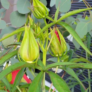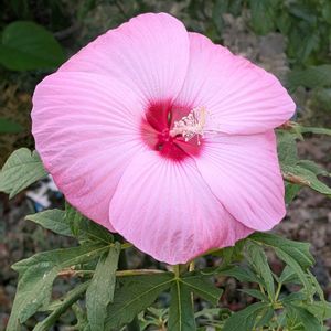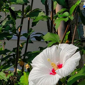 今日のお花 フヨウ ではありませんが フヨウ属と言うことで🙋♀️ アメリカフヨウとモミジアオイとの交配種のタイタンビカス🌺 種から育て、今年初めて花をつけてくれました。