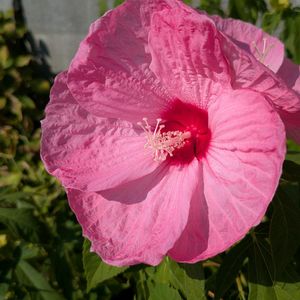 ✿タイタンビカスと芙蓉 ① 🍀タイタンビカス・イリス アメリカフヨウとモミジアオイの交配 アオイ科 宿根草 別名・宿根ハイビスカス 大きな花が魅力的で華やかな色合いです ②🍀フヨウ/芙蓉 🏷️今日のお花 アオイ科 落葉低木 別名・木芙蓉 キハチス ○芙蓉は一重が多い 花色は変化しない ○酔芙蓉は八重咲きが多い 一日の中で花色が変化 白→ピンク→赤 一度変化をじっくり見てみたいです お出かけ先にて ☆ムクゲとの違い 葉の大きさ 形が違います (芙蓉の方が大きく手を広げた形) 花のシベの向き 開花時期はムクゲが早い ✿自宅の元気なお花達 どれも楽ちんなお花たちです😁 ③🍀アサガオ ④🍀ヤナギバルイラソウ ⑤🍀オシロイバナ