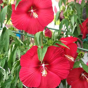 街中散策で 真っ赤なタイタンビカスに出逢いました。花径は20cm位もあり 存在感十分です。 タイタンビカスは アメリカフヨウとモミジアオイの交配 選抜で作られたそうで 丈夫な宿根草です。 最近は 園芸用のタイタンビカスを食用に栽培した食べタイタンが販売されているようで エディブルフラワーとしてサラダの彩りとしたり 肉や魚を包んで調理するのに使ったりされるのだとか…。🤗✨ アメリカ原産。 アオイ科フヨウ属の宿根草。