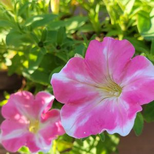 おはようございます☀️.° 朝は⸝⸝☀️´-ギラギラ ☔になる予報だけど 🏷木曜日は桃色 ペチュニア🩷可愛い タイタンビカス 大きな花直径23cm🩷 🤍⋆꙳🩷の花は18cm アサガオは6cmです〜 今日朝も華やかに咲いて居ます ガーベラ再び一輪咲き出しました🌸🍃 ミニバラも可愛い💕💕💕 素敵な一日をお過ごしください