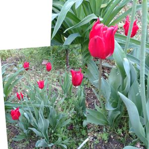 ☆︎*:;;;;;:*☆︎こんばんは☆︎*:;;;;;:*☆︎ いつもありがとうございます(*´∀`*)💕 🌷プリティーウーマン🌷 昨年掘り出した球根からの開花です❤️ 雨上がりに写したからうな垂れてしまいました💦 くびれも無くなっちゃった‹‹\(´ω` )/›› でも、パキッとした赤が華やかで可愛いです❤️❤️❤️