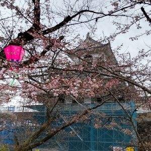 宮城県白石市の白石城🏯 3月16日の地震でだいぶ被害が出ました 修復作業中 ソメイヨシノ🌸やっと開花 週末はだいぶ暖かくなるのでいっきに咲くかも😃