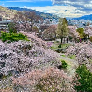 サクラ(桜) 諏訪の高島城天守閣から 桜の庭園が見事でした。