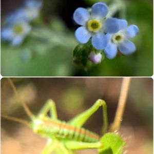 🌿💙キュウリグサをパチリしていたら突然登場❗️ ぴょんぴょん跳ねる小さな虫くん🦗🌿 小指の先程の君はだぁれかな⁉️