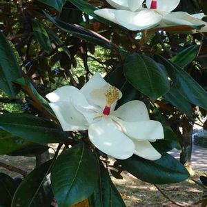 タイサンボク(泰山木・大山木) モクレン科 モクレン属の常緑高木。 別名 ハクレンボク(白蓮木) 名前は、花や葉が大きいことにちなむとのこと。 緑地公園で、ホオノキの花とそっくりな花をつけた木が目に入りました。たくさんの大きな白い花が咲いていました。蕾も花の終わったものもたくさんついていました。高さ10m以上はありそうですが、花は目の高さより少し高い所にもありました。ホオノキの花とは違った芳香がありました。