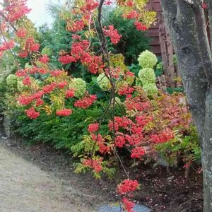 垂れ下がったナナカマド。 向こうにドライのアジサイ。 秋です❕