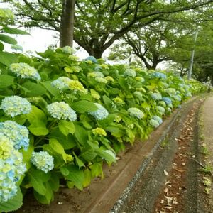 毎朝の散歩道がこれから暫くは「アジサイ通り」に(^^♪ だんだん花が大きくなって、青く深まる色を眺めるのが楽しみです。