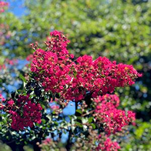 おはようございます(*´▽`*)ノ)) 青空💙と桜の木🌳と赤い百日紅❤️ 素敵な一日を お過ごしください🍀*゜