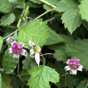 珍しいニガイチゴ 4/10日 別の場所で見たニガイチゴと比べて 葉の様子が違っていました🤔 📸撮影地 名古屋市郊外の池の近くの散策路。 道幅1.5mくらいで、ツツジやガマズミ、コナラ の木が見られ、日当たりの良い所。 🤠ニガイチゴはカジイチゴと交雑する可能性があり それをヒメカジイチゴというそうです。 ✳︎調べてみたら、これはニガイチゴ🥱 👽コウザツスルノカ.....
