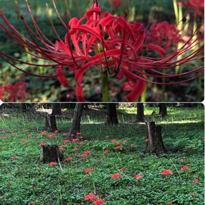 木陰に咲いた彼岸花❤️❤️ お日様のスポットライトを浴びて 綺麗だね〜🥰❣️