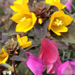 もうすぐ上がりそうな弱い雨☔ 午後から晴れるってことは、蒸し暑くなりそうです💦 昨日は生垣と春に咲いた庭木の剪定で1日終わりました。 生垣を2段にしてあるおかげでやたら本数が・・・😅 合計40本近くを主人と2人で切りまくりました。 スッキリしたけど、今日は身体中痛いです😂 本日の初開花 1 はじめましてのお花 リシマキア 銅葉に黄色の花が目を引きます💛🤎 チラリと見えているのが這い性スイートピー💗 2 数年前に播いたカタナンケ💙 今年も咲いてきました❣️ 3 宿根デルフィニウム・ハンキードリー🤍 植え替えしていないからギュウギュウ😂 下葉が傷んでいますが蕾の数がたくさんでワクワク🎵 花後に鉢増ししよう。