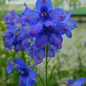 先日お迎えしたデルフィニウム・ハンキードリー❇️❇️💙💙❇️❇️ 地植えしておいたら株が広がりました🤗 お迎えした時はまだ蕾でもう少し薄い色のお花が咲くかなと思っていたのですが、鮮やかなブルーの花色でとても綺麗です💙✨