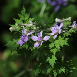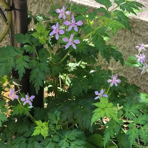 セリバヒエンソウは 明治時代に原産国中国から東京に渡り、分布したそうです 野川公園にはそこここの足元にこの時期たくさん薄紫の花をつけています、昨年道沿いから、一つ頂いてきました ダメ元でしたが、今年花が咲きました😃 よく見ると花がとても面白い形を しています飛燕の名の通り... 葉は芹に似ています セリバヒエンソウ(芹葉飛燕草) キンポウゲ科