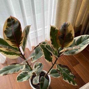 今日は、観葉植物~😃🍀 グレ子さんの投稿を見て👀✨✨ 我が家のこの子を思い出しました😆‼️ ピンクの斑が気に入っています💕 ラベルには、ゴムの木としか書いてなかった お名前不明の子です(๑́•∀•๑̀)ฅ💦 ティネケなのかトリコロールなのか・・・😅 そろそろ家の中に取り込もうかな(๑ ́ᄇ`๑)