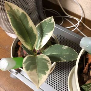 フィカス エラスティカ ティネケ 地元の園芸屋さんで偶然見つけることが出来、購入しました。 まるで絵の具を塗ったような美しい模様と赤い新芽が可愛い!