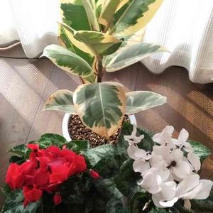 毎日暑いですね🌞この先も35℃の予報😱暑過ぎでしょ😩 ゴムの木の色違いのお二人さん🍃左はアルティシマ バリエガータ 右は斑入りゴムの木 名前は分からないです😥 斑入りゴムの木はひょろひょろだけど立派に育って欲しいな😊 両方とも葉っぱが綺麗で可愛いです🌿