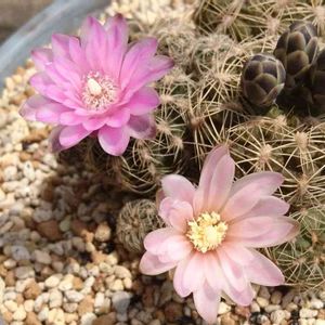 ギムノカリキウム属 羅星丸 ギムノの中でも早咲きの羅星丸✨ 蕾が2つ開花しました! 微妙に花色が違うな~🎶 一斉に咲かないかな~😆