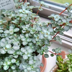 寄せ植えに植わってた子です🌱 とても小さな葉でシルバー入ってます✨ この子の名前知りませんか🙄❓ 名前判明しました✨ 毎回皆さんありがとうございます😃