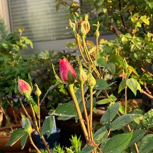 先日お迎えしたばら🌹 マダムヴィジェ 蕾が出ているのを買い求めたので 当然といえば当然。 色づいてきました。 お値段に誘惑されてお迎えしたバラです。 皆さんの投稿を見てたら、私も混ぜて〜💕 てアップしちゃいます。