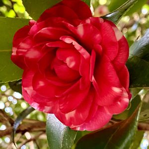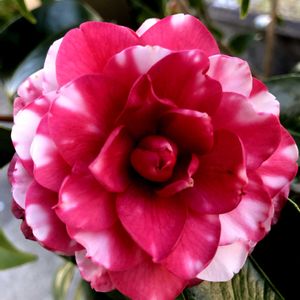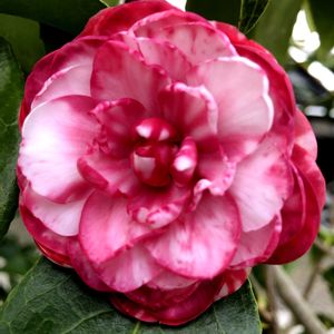 昨日は椿園に行ってきました🚘🎶 和椿「菊冬至」💮😃💕 紅地白斑入り千重咲。 中輪。 11月~4月咲千重咲としては晩秋から咲く希少品種。 日当たり良好な場所では、葉色の黄緑色に紫紺色が加わる。 江戸時代からの古典名品種。 可愛く撮れました😃🌼🌿📷