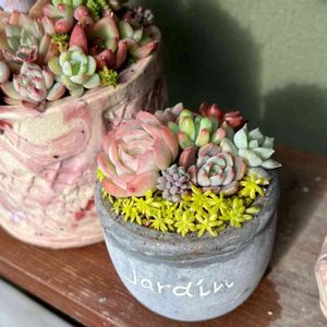4月に作った寄せ植えに近づいて 📸 色づきまだだけど この色も好き 可愛いらしい 🎶(๑・̑◡・̑๑)💗 アルケイン ストロベリーアイス ラウリンゼ 花月夜 桃太郎等