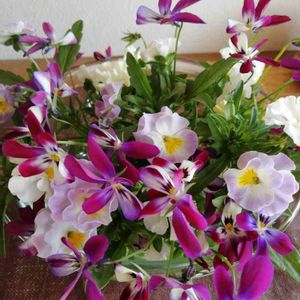 ご近所からのお裾分け 細長い花びらのビオラちゃん可愛い~😆