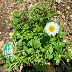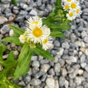 あ、砂利のところにハルジオンが♡ 源平小菊にやっぱりそっくり(*^^*)蔓延るから忌み嫌われるけど、わたしは好き〜だから、いつも少し残しちゃいます。ピンクも出てこないかな〜ꕤ*.゚