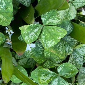オープンガーデンをしているご近所さんのお庭♡斑入りの白のオキザリス〜❣️❣️❣️
