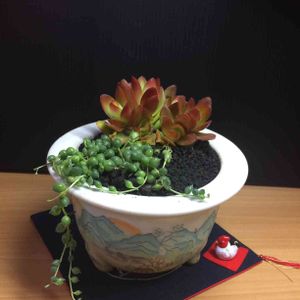 こんばんは。冷たい☔️ 古い和鉢を活かしてみました🎍😄
