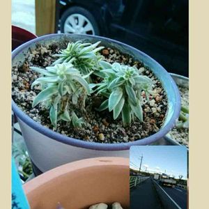 これ買った時名札が付いてなかったのですが 覆輪万年草でしょうか? 6月にお迎えしてから秋になってから少し 成長して来ましたが左前の下の部分が クモの巣みたいになってます😓 これは病気でしょうか? どっちにしてもこのままの状態でいいのか どうか分かる方教えて下さい🙇 右下↘の📸は最近運動不足でこの道路の歩道を 歩いてます🎵