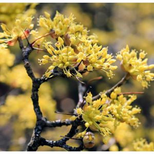 今日のお花 ⁑ サンシュユ🌼🌼🔴 春黄金花とも呼ばれるサンシュユ。 早春に咲く花は何故か黄色が多いですね🌼 山茱萸 ⚫︎⚪︎⚪︎⚪︎⚪︎ (過去pic)