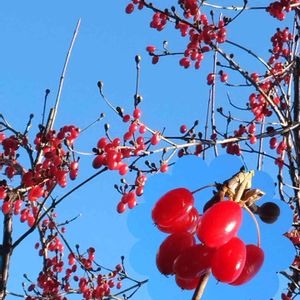 青空に真っ赤な実 何かなと思ったら サンシュユだよと教えて貰ったよ❤️ 今で気がつかなかったよ いつも雪がか被ってたからかな☃️ 🏷日曜日は日本を感じる和の花