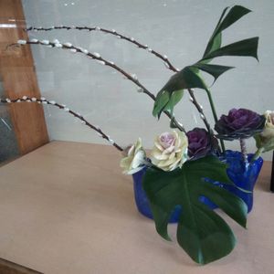 昨日は新年会💗 ①市役所ロビーのお花 ②③④煉瓦館 ⑤スイーツの🎁🎶