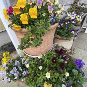 おはようございます🌞 今日は暖かくなりましたが、黄砂、花粉が非常に多いので洗濯物🧺外干しできませんね(−_−;)💦 エントランスの寄せ植えが満開です