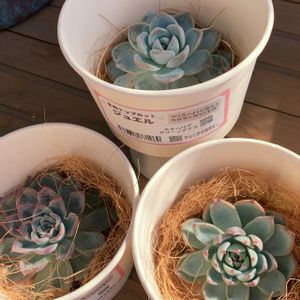 HC 多肉さん❁⃘❁⃘❁⃘ 決して珍しくはないけど値引きの品だったので 今日 我が家に仲間入りしました*˘ ˘* ココヤシファイバーが敷かれたアイスカップの様な容器に入ってて カップには(多肉トップカット)と書いてありますね~ カット苗という事ですよね➰ ちょっと笑っちゃったのはエケベリアではなくエキベリアと書いてあるんです? フシギ𖦹 (σ°▾。)σ 𖦹 発根しててココヤシファイバーに絡んでしまってます➰ 植え込みは もう少し気温が安定してからにしようかな~🪴 ⬆️アイスグリーン ↙️ヘラクレス ↘️ティッピー
